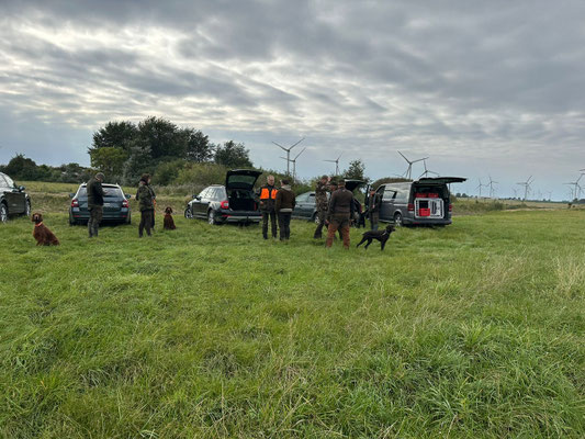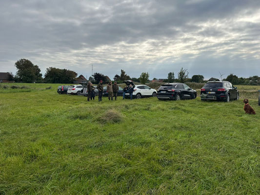 Nach Kontrolle der Impfausweise und Jagdscheine fand ein gemeinsames Frühstück mit anschließender offener Richterbesprechung statt, nach dieser fuhren die Richter und Gespanne hinaus in die Prüfungsreviere Marne und Diekhusen-Fahrstedt