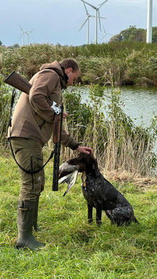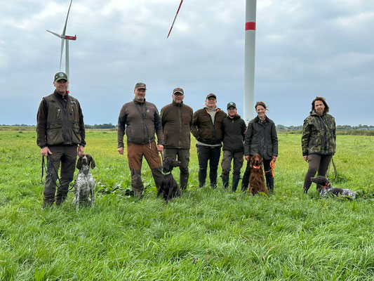 Am 12.04.25 trafen sich bei herrlichem Frühlingswetter um 8:00 Uhr 5 Hundegespanne zur Derby Prüfung in Rodenäs. Nach einem gemeinsamen Frühstück und der Begrüßung durch den Suchenleiter und Revierführer Heiko Perersen wurde um 9:00 Uhr die Prüfung im Feld begonnen. Der Besatz an Wild (Hase und Fasan) war sehr gut, so dass alle Hunden ein Sichtlaut eingetragen werden konnte. Am Ende der Prüfung konnten alle angetretenen Hunde die Prüfung bestehen. Es wurde ein 2. und viermal der 1. Preis vergeben werden. Der Suchensiegerin Kikki mit Ihrem Führer Uffe Sondergaard wurde ein 4h im Vorstehen und ein Andreas Stern bescheinigt. Der Dank der Hundeführer galt den 3 Richtern Mareike Hein, Maike Petersen und Stefan Carstensen für das faire Richten. Nach einem Gemeinsamen Essen ging ein schöner Prüfungstag um 17:30 Uhr zu Ende.